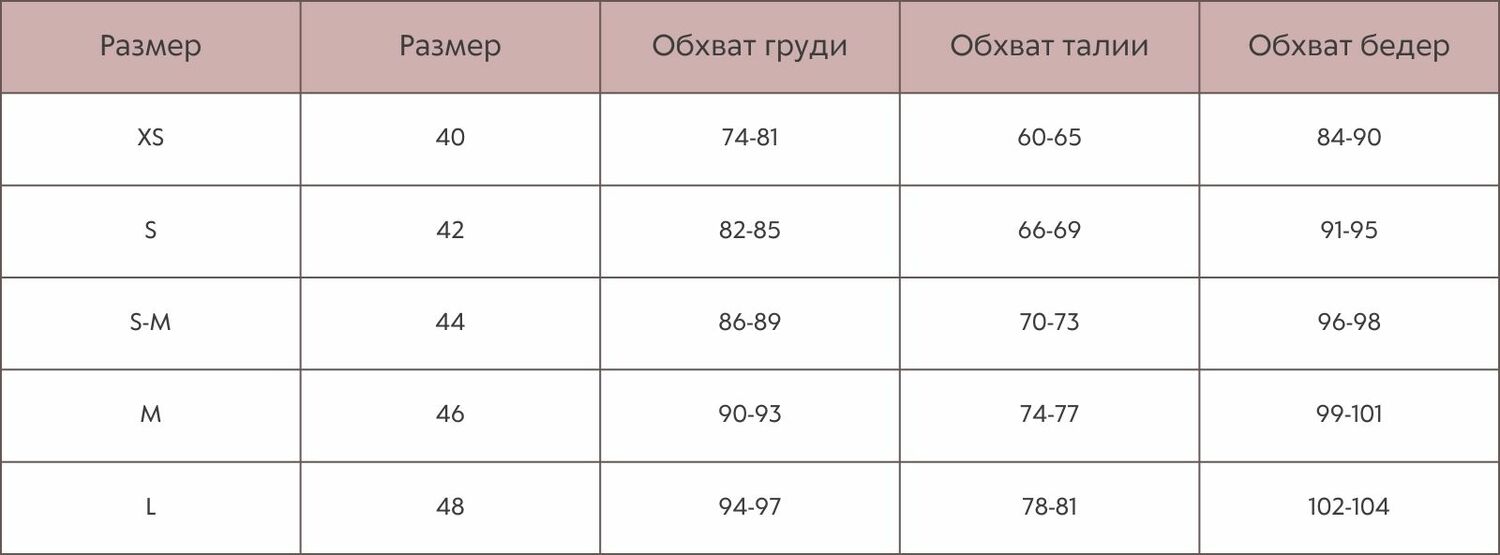 Таблица размеров: